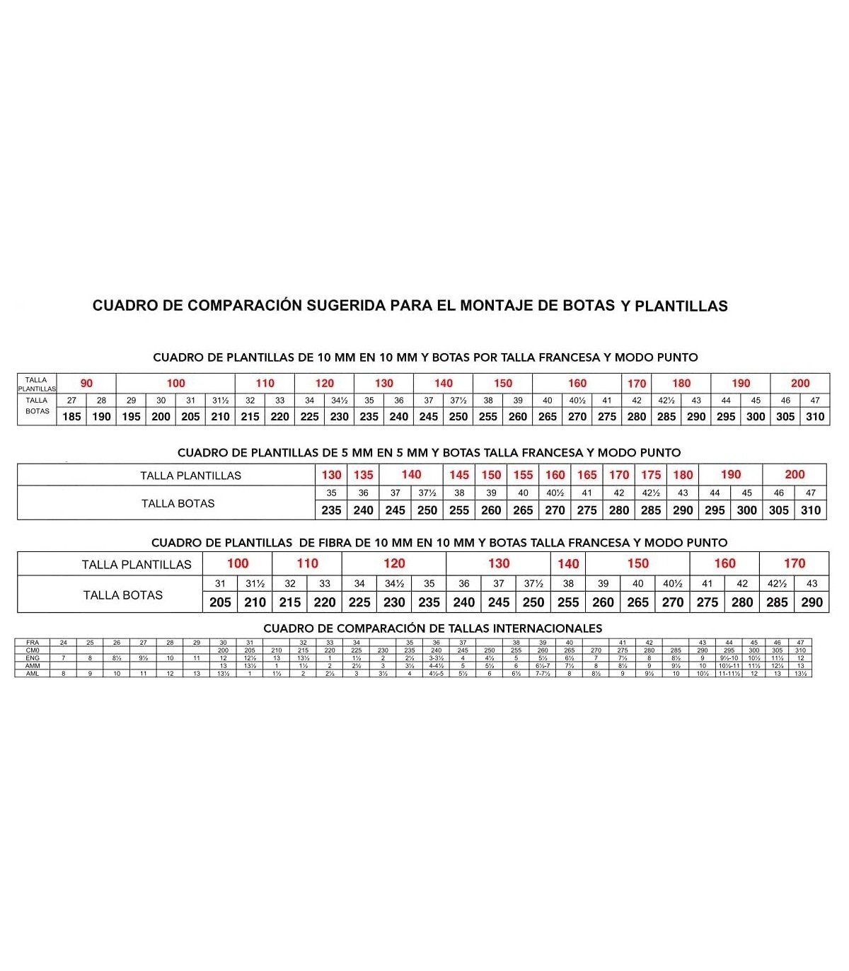 With the purchase of these boots, the service of assembly and revision of the bases or blades is included, in our premises, free of charge, the price of transport, for the return of the assembled skates, is charged when placing the order. . The customer must send their skates to the address of our store.